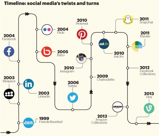Instagram, a picture focused social media platform, launches. Pinterest launches and allows users to share recipes, life tips, and post their own content.