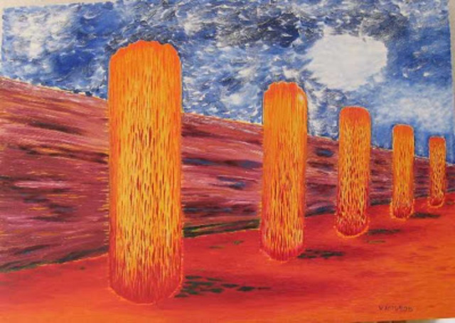Hilera de capiteles papiriformes pertenecientes a la arquitectura del antiguo Egipto.