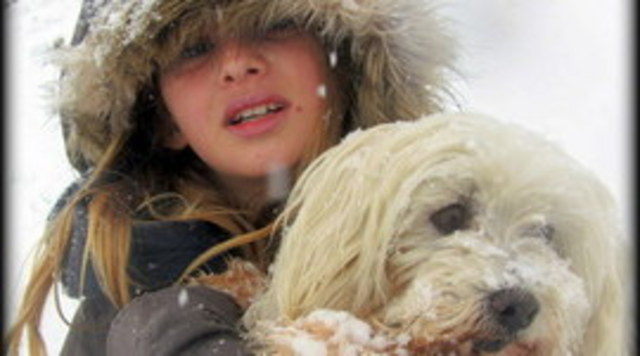 Spike is taken to the snow and its a bit cold for him but it is still fun.