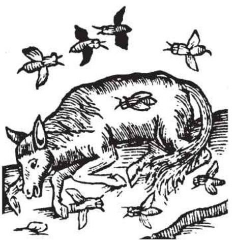 “So with animals, some spring from parent animals according to their kind, whilst others grow spontaneously and not from kindred stock; and of these instances of spontaneous generation some come from putrefying earth or vegetable matter, as is the case with a number of insects, while others are spontaneously generated in the inside of animals out of the secretions of their several organs.” 539a18-26