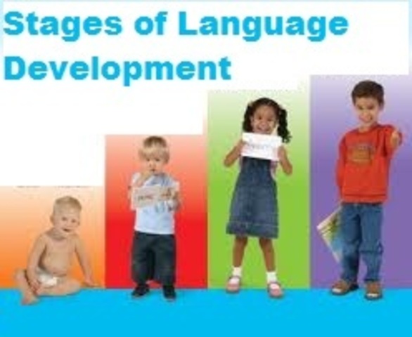Language development begins at birth as baby learns to coo, vocalizes pleasure and displeasure and makes noise when talked to.
