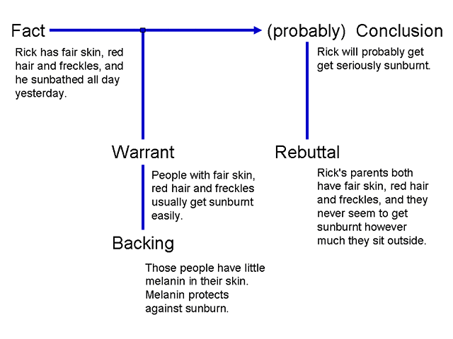 Toumin's Model of Argument is broken down into six steps: