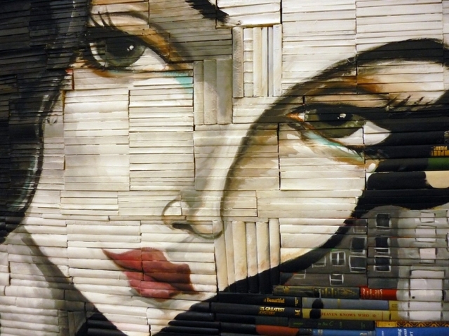 Mike Litter (Mike Stilkey) - American artist from Alta dena, California. Instead of the traditional canvas, paper or wooden base, Mike takes a bunch of books and draws his works directly into their spines. In essence this work is quite challenging and even provocative.