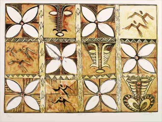 Rub Ink/dye on Tapa cloth over tepmlate to show the design