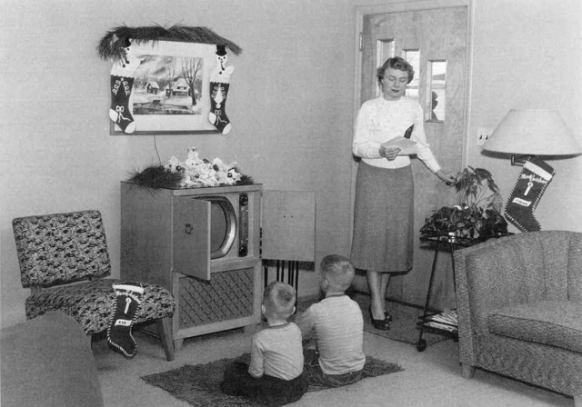 Peter Goldmark from CBS invents the first color television. The television drew families away from the kitchen and into the living room to spend time together.