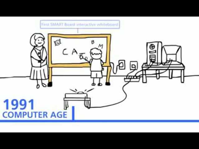 The first interactive white board was introduced in classrooms. This allowed students to be interactive with a "white board" and it would respond to their touch. They called it a SmartBoard.