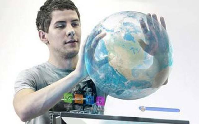 Touch Wall (pared digital) que se trasforma en una interface multi-tactil donde el usuario puede manipular con ambas manos la información y visualizar los objetos sobre la pantalla.
