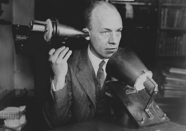 saca a la luz su invento en una demostracion publica, la vox de un cantante es reproducidad a una considerable distancia.