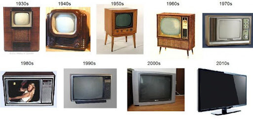 se produjeron en la década de los 20, y que algunos de los primeros televisores se fabricaron en los años 30. Su calidad de imagen y el tamaño de la pantalla eran enormemente limitados; las pantallas no eran mayores a 3 cm de acho, y ofrecían imágenes borrosas con tonos entre rojizo y anaranjado. -