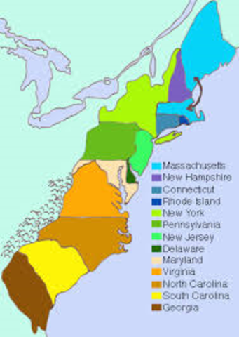 These are the the 13 origional british colonies.There also is some extra information leading up to this.(some of these months and days may be incorrect.)