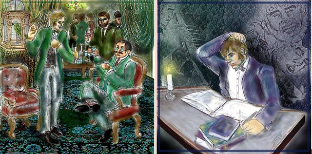 The lawyer suffered severely from loneliness and depression. The sounds of the piano could be heard continually day and night from his lodge. He refused wine and tobacco. He read books principally of a light character; novels with a complicated love plot, sensational and fantastic stories, and so on.