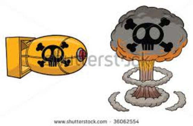 Scientists descover a way to split an atom, creating a huge explosion, and begin to make a bomb using the atom splitting process