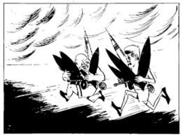 The Cold War: Arms Race By j3nna_buckl3y Aug 6, 1945 America drops first atomic bomb on Japan Aug 29, 1949 Soviets detonated it's first atomic bomb Jan 30, 1950 Approval from USA of hydrogen bomb Jan 1, 1952 Great Britain makes it's own atomic bomb Mar 1, 1954 USA's first test of the hydrogen bomb Aug 27, 1957 First ICBM bomb is tested by soviets Oct 4, 1957 Sputnik is put into the orbit Jan 1, 1960 France makes its own atomic bomb Oct 1, 1961 Soviets make TSAR bomba Oct 16, 1962 Cuban missle crisis Oct 1, 1964 China makes own atomic bomb Mar 5, 1970 Non-Proliferation Treaty Mar 23, 1983 Strategic Defense Initiative Jan 1, 1986 Reagan and Gorbachev Agreement Jan 1, 1991 End of Arms Race