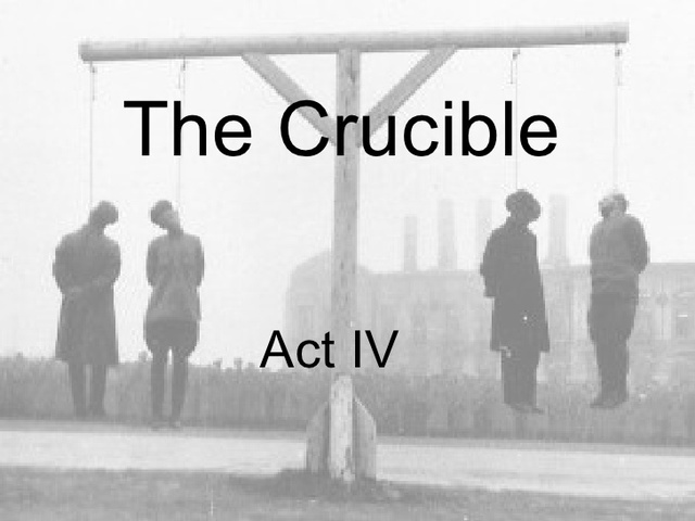 The court takes Proctor out of the prison to the gallows to be hung. Hale begs Elizabeth to convince Proctor to change his mind. Elizabeth refuses. She knows what John wishes and respects it.In the end of the Salem witch trials, John Proctor and Rebecca Nurse hang for not confessing of witchcraft.