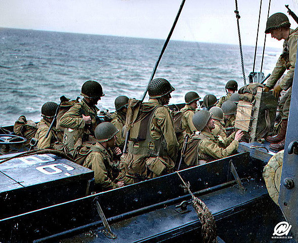 The Allied troops (North Americans, British and Canadians), under the command of the North American General Eisenhower, landed on the coast of Normandy in France. Following a difficult battle against the Germans, they finally managed to force them retreat as far as Paris.