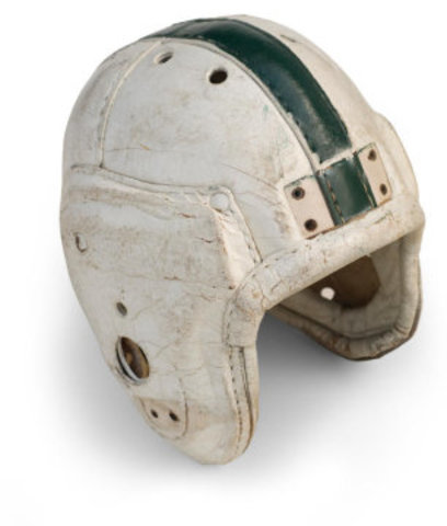 This first helmet was made by James Naismith, with thick leather, to protect guys from arrows in combat, sword blows, etc. This was not mandatory to wear, but some guys did choose to wear it.