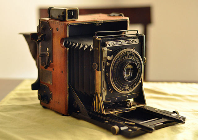 The Folding Camera was a camera that used flexible film in 1910- the 1920s. These cameras had their lens pulled out with an accordian of leather attached, and they were foldable. This convinence made the Folding Camera very portable.