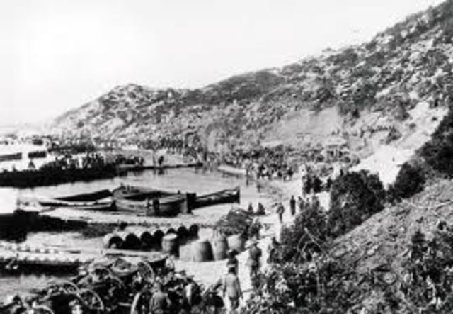 The 9th and 10th battalions are landing under heavy Turkish machine gun fire many are shot or down. Previous orders are forgotten and men are told to drop their packs and scramble up to the enemy lines