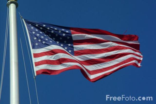 13 read and white stripes and the British Union Jack in the upper left-hand corner.