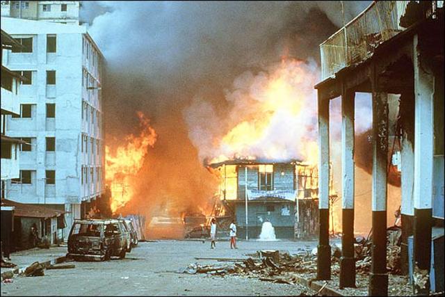 On December 19, 1989 Geroge Bush, the president at the time called for "Operation Just Cause" in order to improve the nation's image as well as prevent Noriega from further action. Bush launched a full-scale attack using the excuse of Panama firing at US soldiers passing through headquarters and Noreiga's statement of declaration of war.