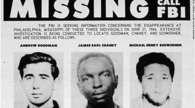 n Neshoba County in central Mississippi, three civil rights field workers disappear after investigating the burning of an African American church by the Ku Klux Klan. Michael Schwerner and Andrew Goodman, both white New Yorkers, had traveled to heavily segregated Mississippi in 1964 to help organize civil rights efforts on behalf of the Congress of Racial Equality (CORE). The third man, James Chaney, was a local African American man who had joined CORE in 1963.