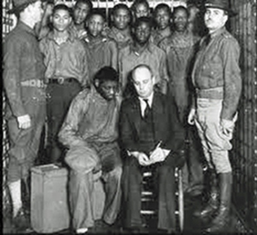 March 25: In the depths of the Depression, a fight breaks out between white and black young men who are riding as hoboes on a Southern Railroad freight train. The train is stopped by an angry posse in Paint Rock, Alabama, and nine black youths are arrested for assault. Rape charges are added, following accusations from two white women who have also come off the train, Victoria Price and Ruby Bates. The accused are taken to Scottsboro, Alabama, the Jackson County seat. The women are examined by D
