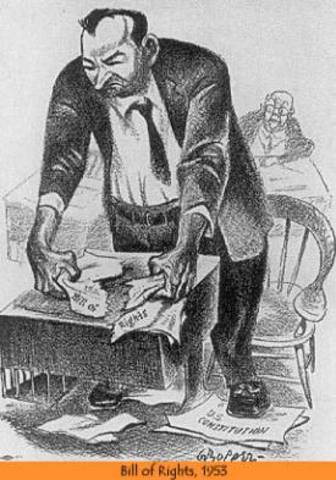 From 1953- 1954 Senator Joseph McCarthy was the chairman of the senate subcommittee on investigations. McCarthy used his position to start a witch hunt. He damaged reputations of vague and unfounded charges, this was to be remembered as McCarthyism. Thousands of Americans were accused of being Communists or communist sympathizers and became the subject of aggressive investigations and questioning before government or private-industry panels, committees and agencies.