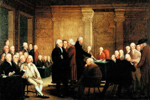 Occurred September 5 - October 26, 1774. Delegates from each colony met at Carpenters Hall in Philadelphia, Pennsylvania, and discussed the situation with the intolerable acts. letters were sent to King George III and expressed the issues that they had regarding how they were being treated, and demanded the acts to stop before they boycott English goods. The king chose to ignore them, whilst the boycotting began. -