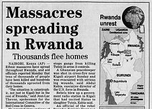 On April 6, 1994 the President of Rwanda Juvenal Habyarimana a hutu was killed. HIs plane was shot down above Kigali airport supposedly by Tutsi rebels. This was considered the start of the mass genocide.