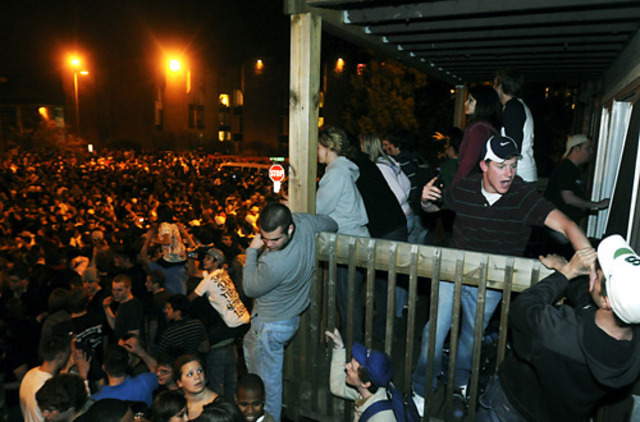 On the weekend of October 15, 1989, Cedar Street saw 30-foot flames from bonfires surrounded by more than 3,000 people.