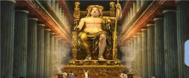 The Statue of Zeus By A52566B 490 BCE Phidias was born 456 BCE The creation of an ancient wonder Made by famous sculptor Phidias, this colossal statue of the mighty Greek god Zeus, took eight years to make. Period: 456 BCE to 475 The Statue of Zeus Time Period 170 BCE Damaged by earthquake 394 Olympic Games banned 450 Taken from temple 475 Destroyed by fire 1958 A workshop was found during the 1950s a workshop was found, that was used to make the statue