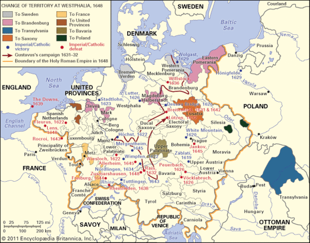 Germany remains divided into separate sovereign principalities with elected emperor. France has the most advantage of the contract - it gets areas north of the Pyrenees from Spain. Sweden received Western Pomerania, which became the sole ruler of the Baltic Sea. Тhe independence of the Netherlands is also recognised.