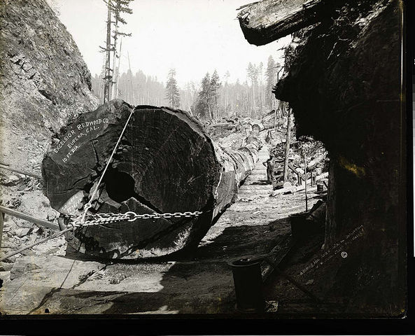 Railroads are starting to transport redwood trees instead of the traditional ox and sled. This speeds up the proccess of transporting trees from the forest to the mills, Railroad tracks themselves needed a significant amount of redwood for strong beams and tracks.