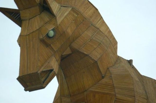 The greece people made a woden house and the greeks peolpe invaded the city of troy and slorted the peolpe when they were sleping -