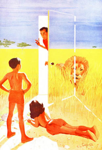 George and Lydia walk into the nursery and find out that what the kids have been doing in that virtual room was looking at Africa. The lions are killing eating other animals and it is very violence. Lydia came out of the nursery and she was really scared because of that room and she thinks that the kids should not be watching this.