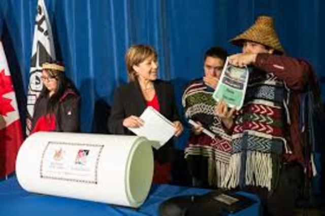 is a treaty that was settled between the Nisg̱a'a, the government of British Columbia, and the Government of Canada that was signed on 27 May 1998 and came into effect on May 11 2000.