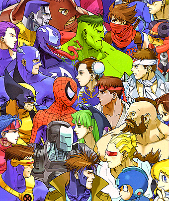 The first Marvel vs Capcom, the marvel super heroes and the capcom universe