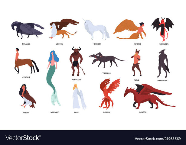 Collection of various magical mythical creatures vector 21968369