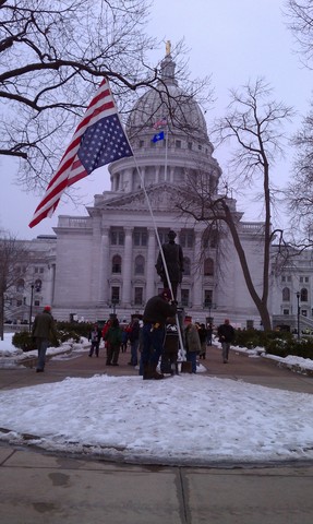 Over 100,000 protesters flocked to the Capitol Square to voice their opinions on the bill, resulting in the largest state rally since the Vietnam War