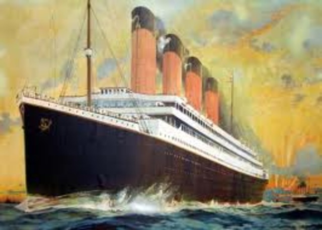 The titanic swiftly moves through the water as it sets sail.