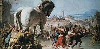 The Trojan War begins with Paris, a Trojan prince, who kidnaps the beautiful Helen of Sparta. The Greek Spartans hold Troy under siege for ten years. To end the stalemate, Odysseus comes up with a plan. Odysseus hides himself and his men inside a giant wooden horse and leave it in front of the gates of Troy. The Trojans accepted the horse as a peace offering and thought the trojans quit. The horse is brought inside the city and the Greek men spring from the horse and attack. analysis