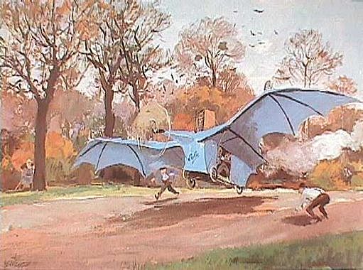 L'inventeur Clément Ader (1841-1925) s'attaque au problème du "plus lourd que l'air". Il conçoit alors son Eole, en reprenant la silhouette d'une chauve-souris, et en utilisant un moteur à vapeur. Le 9 octobre 1890, il réalise un "bond" de quelques mètres de longueur. Mais le pilotage est compliqué, avec de nombreuses commandes.