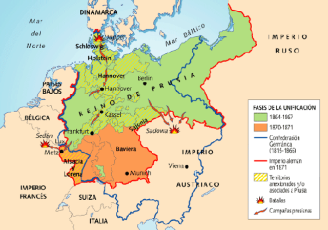 Prusia es un estado fuerte. Gobiernan El rey Guillermo I y su Primer Ministro, Otto Von Bismarck. Ambos ambicionan una Alemania unida y fuerte bajo la hegemonía prusiana.
