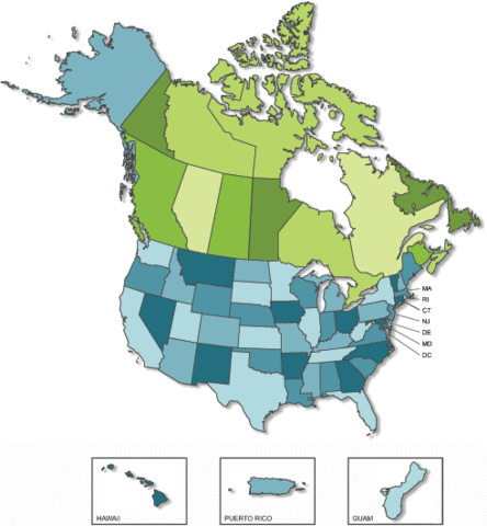 The United States and Canada expand into western North America.