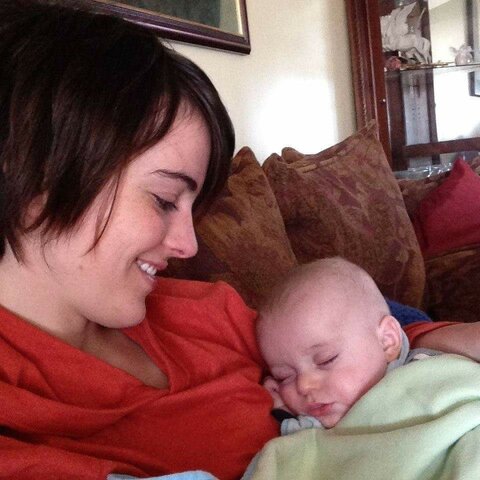 Caleb cuddling with mom after his birthday travels the day before. -
