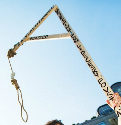 Symbolem se staly nesené šibenice a účastnil se také Tomio Okamura a Aleš Brichta.