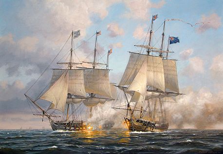 British vessel fired upon USS Chesapeake, President Jefferson Declared an Embargo on the British http://russgeorge.net/2014/06/25/world-fights-last-great-sea-battle-fishing-privateers/patrick-o-brien-hms-shannon-vs-uss-chesapeake/