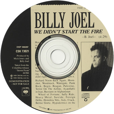 "We didn't start the fire" By Macy(: Apr 13, 1950 Television Sep 18, 1950 Marilyn Monroe Feb 7, 1951 Sugar Ray May 25, 1951 Hydrogen Bomb Oct 17, 1951 Catcher In the Rye Apr 12, 1952 Polio Vaccine Feb 7, 1955 Peter Pan Nov 30, 1955 Elvis Presley Jul 25, 1969 Woodstock Jun 13, 1983 Wheel of Fortune