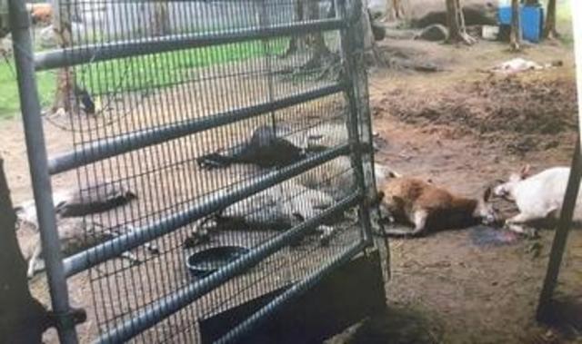 After receiving a complaint that two Rottweillers killed 18 goats at the 70-acre tenant farm at 465 American Legion Highway, police execute a search warrant on the property and discover hundreds of dead and neglected animals with a stench and squalor so bad it was closed off as a “biosecurity area.” Hundreds of animals — pigs, cows, geese, goats and sheep — were found dead while the living animals, many of them neglected with no food or water, were walking around the dead livestock.