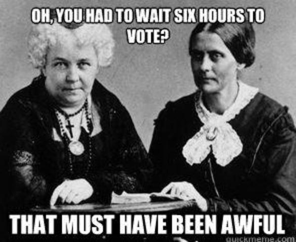 Encouraged by Susan B. Anthony, women across the nation attempt to vote using the 14th Amendment as justification. This fails and many women are arrested and tried in court. Photo Source: Here